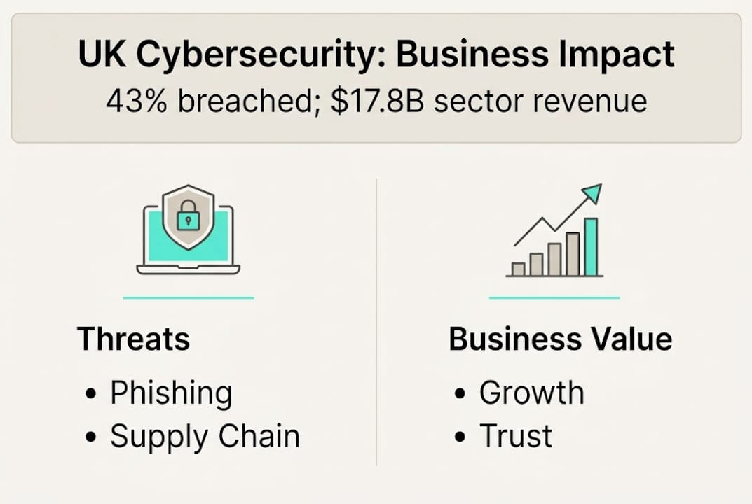 Most business leaders still think of cybersecurity as something the IT department handles quietly in the background. That assumption is costing UK organizations real money. 43% of UK businesses experienced breaches in 2025, with disruptive incidents averaging £1,600 each in direct costs alone. The reputational damage, operational downtime, and lost customer trust rarely show up in that figure. This article cuts through the noise to show why cybersecurity is no longer a technical checkbox but a core driver of business resilience, competitive advantage, and long-term growth for UK organizations.